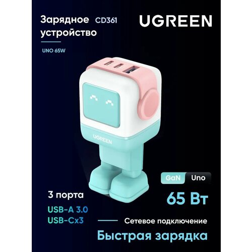 Сетевое зарядное устройство UGREEN CD361 Nexode ROBOT GaN 65W USB-A+2*USB-C розово-синий