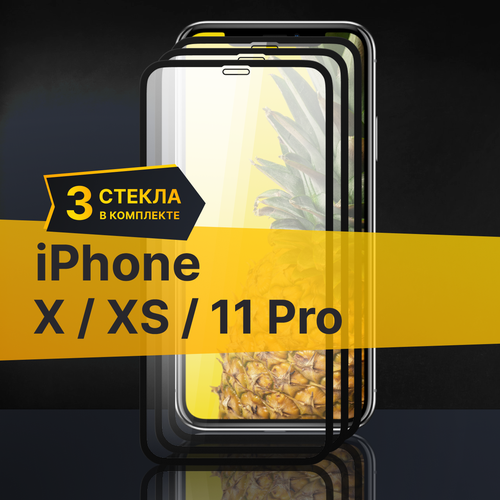 Комплект 3 шт. Противоударное защитное стекло для телефона Apple iPhone X, XS и 11 Pro / Полноклеевое 3D стекло с олеофобным покрытием на смартфон Эпл Айфон Х, ХС и 11 Про / С черной рамкой