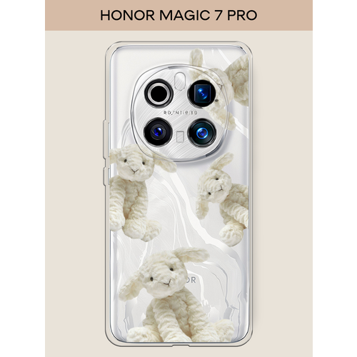 Силиконовый чехол "Плюшевые овечки" на Honor Magic 7 Pro / Хонор Мэджик 7 Про, прозрачный