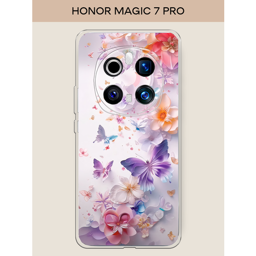Силиконовый чехол "Цветы и бабочки" на Honor Magic 7 Pro / Хонор Мэджик 7 Про