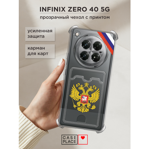 Чехол на Infinix Zero 40 5G (Инфиникс Зеро 40 5G) с картой и принтом "С гербом России"