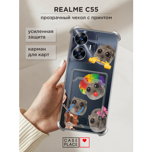 Чехол на Realme C55 (Реалми C55) с картой и принтом Хомяки