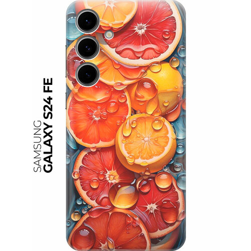 Силиконовый чехол на Samsung Galaxy S24 FE с принтом "Сочные апельсины в каплях"