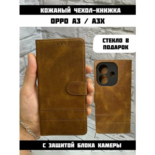 Кожаный чехол книжка из эко-кожи для OPPO A3 OPPO A3X коричневая