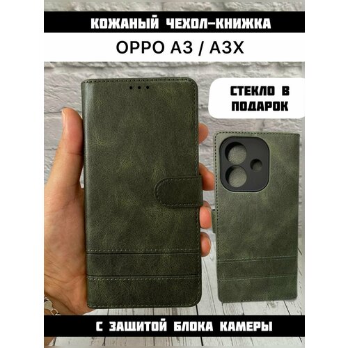 Кожаный чехол книжка из эко-кожи для OPPO A3 OPPO A3X зеленая