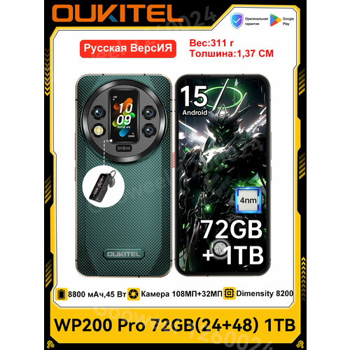 Oukitel Смартфон WP200 PRO 72GB(24+48) RAM 1TB ROM Detachable Bluetooth Earphone Android 15,8800mAh,4nm 5G