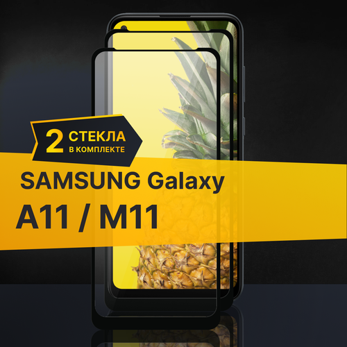 Комплект 2 шт. Противоударное защитное стекло для телефона Samsung Galaxy A11 и M11 / Полноклеевое 3D стекло с олеофобным покрытием на смартфон Самсунг Галакси А11 и М11 / С черной рамкой