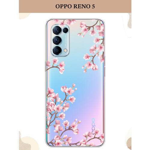 Силиконовый чехол "Весенняя сакура" на Oppo Reno 5 / Оппо Рено 5, прозрачный