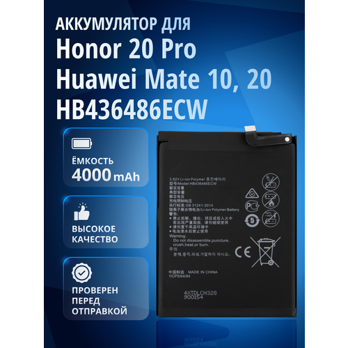 Аккумулятор / батарея HB436486ECW для Honor 20 Pro, View 20, Huawei Mate 20, P20 Pro, Mate 10, Mate 10 Pro, Mate 10 Lite