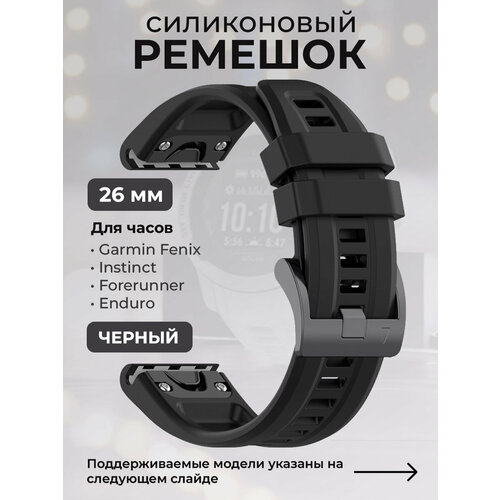 Силиконовый ремешок для Garmin Fenix / Instinct / Forerunner / Enduro, 26 мм, c металлическим фиксатором и баклей