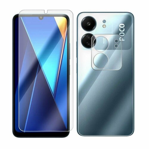 Комплект из защитных гибридных стекол Krutoff для Xiaomi Poco C65 перед/зад/камера