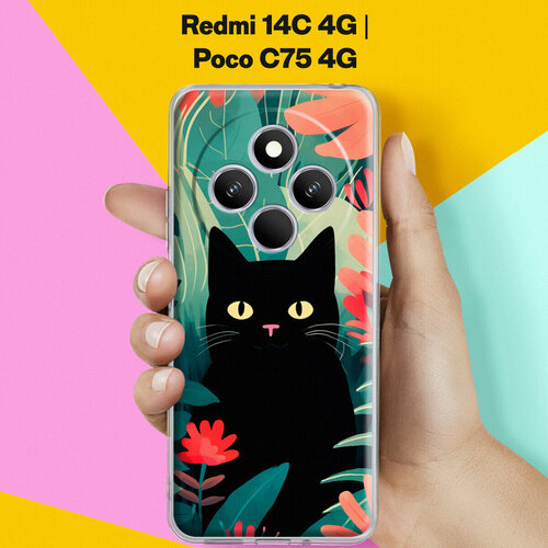 Силиконовый чехол на Xiaomi Redmi 14C 4G / Poco C75 4G с принтом "Черный Кот" с прозрачными бортиками