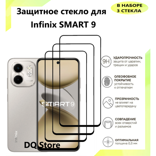 3 Защитных стекла для Infinix Smart 9 / Инфиникс Смарт 9 . Полноэкранные защитные стекла с олеофобным покрытием