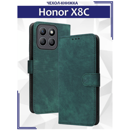 Чехол книжка для Honor X8c c магнитной застежкой / Хонор Х8с c отделением под карты (зеленая)