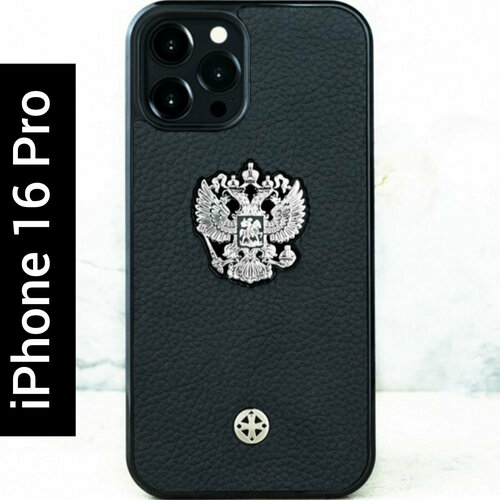 Чехол iPhone 16 Pro / Euphoria Premium Leather Black - Герб РФ - Euphoria HM Premium - натуральная кожа