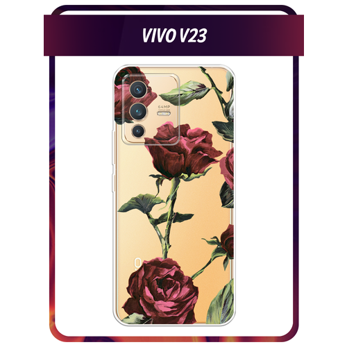 Чехол на Vivo V23 / Виво V23 с принтом Бордовые розы фон, прозрачный