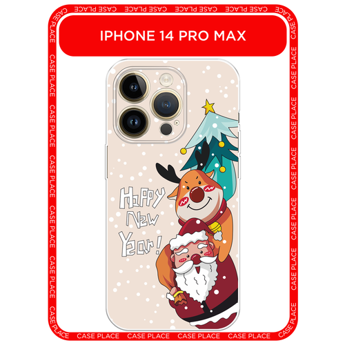Чехол на Apple iPhone 14 Pro Max / Айфон 14 Про Макс с принтом Санта с оленем рисунок