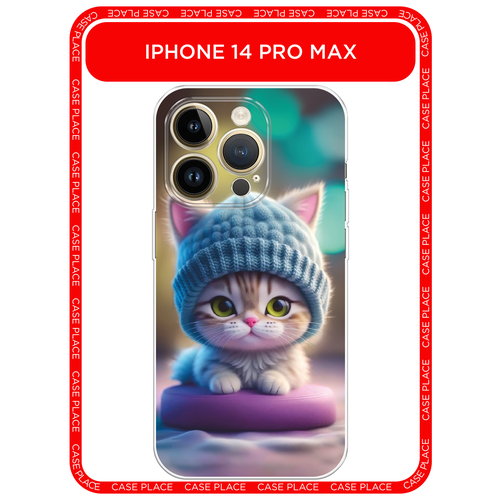 Чехол на Apple iPhone 14 Pro Max / Айфон 14 Про Макс с принтом Котик в голубой шапочке