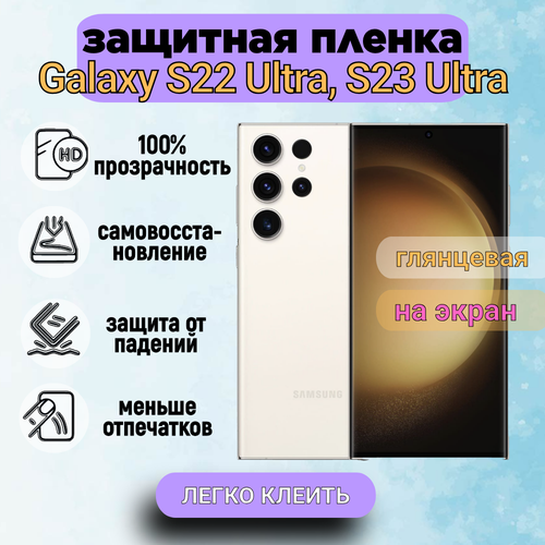 Гидрогелевая полиуретановая пленка на SAMSUNG Galaxy S22 Ultra, S23 Ultra, глянцевая