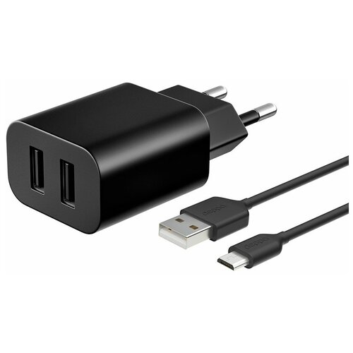 Автомобильное зарядное устройство 2 USB 2.4А, дата-кабель Micro USB, 1m, Axxa, Deppa 2232