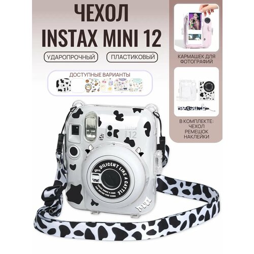Чехол для фотоаппарата Instax Mini 12, прозрачный, пластик, противоударный, 1 шт