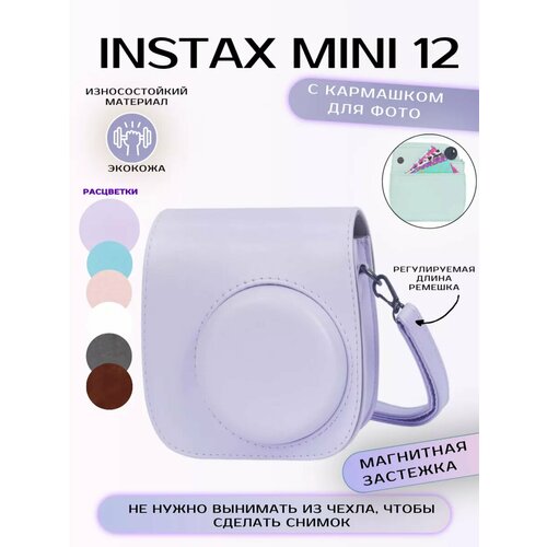 Чехол для Instax mini 12 глянцевый, ударопрочный, с ремешком, застежка