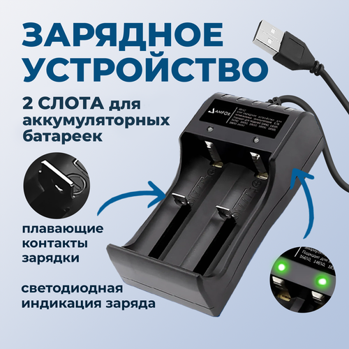 Зарядное устройство для аккумуляторных батареек, AMFOX, AH-12, для 2х АКБ, индикатор заряда, универсальный зарядник liitokala, черное