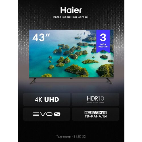 Телевизор Haier 43 LED S2, Smart TV, Android 11, Wi-Fi, Bluetooth, голосовой поиск 43" 4K UHD