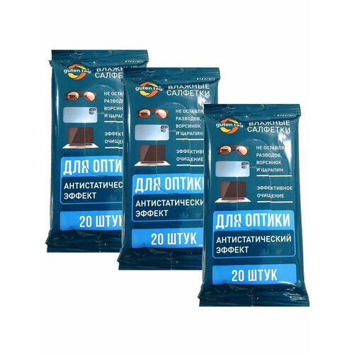 Влажные салфетки для очищения и ухода за оптикой и фототехникой, 20 салфеток х 3 уп