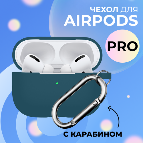 Ультратонкий чехол для Apple AirPods Pro / Силиконовый кейс с карабином для беспроводных наушников ЭплАирподс Про из гибкого силикона, Темно-бирюзовый