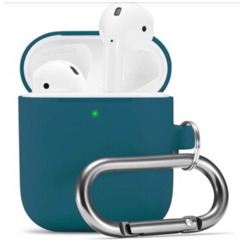 Чехол силиконовый для Apple AirPods2 с карабином, темно-зеленый