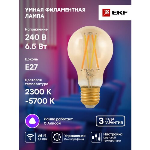 Умная филаментная лампа EKF Connect E27 Wi-Fi