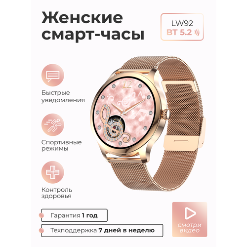 Смарт-часы умные наручные SMART PRESENT LW92 женские, круглые, с большим дисплеем, с функцией телефона, золотистые