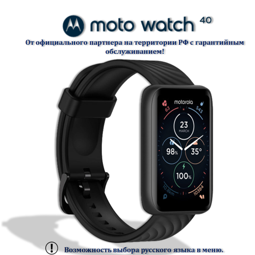 Умные часы Motorola Moto Watch 40 черные, с черным ремешком