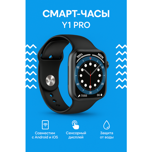 Смарт-часы Hoco Y1 Pro (Black) 6931474766106 EU, Bluetooth, мониторинг здоровья, черные, 5ATM водозащита