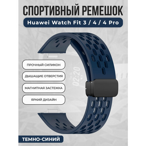 Спортивный силиконовый ремешок для Huawei Watch Fit 3/4/4 Pro, с магнитной застежкой, темно-синий