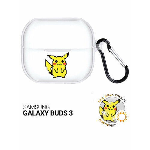 Чехол на Samsung Galaxy Buds 3 с принтом "Pixel Pikachu" прозрачный