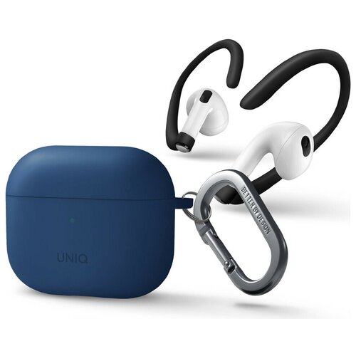 Чехол с карабином Uniq NEXO Liquid silicone + Sports ear hooks (AIRPODS(2021)-NEXOBLU) для AirPods 3