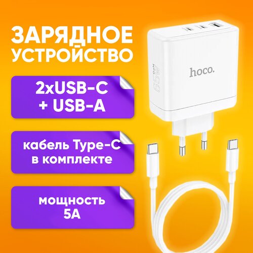 Сетевое зарядное устройство Hoco / быстрая зарядка GaN 65W 2xUSB-C + USB-A / кабель Type-C 100W в комплекте
