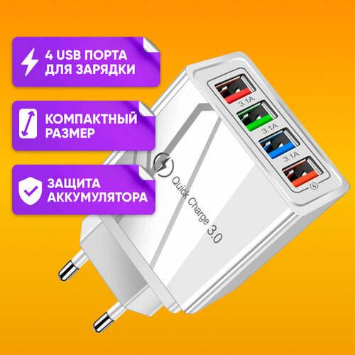Сетевое зарядное устройство 4 x USB A 3.0 3A D22 для смартфона Apple и Android