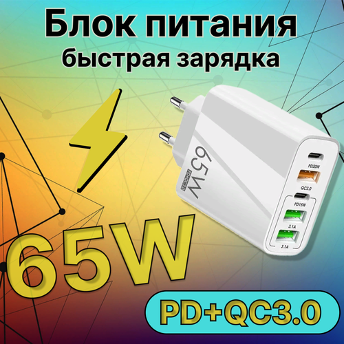 Сетевой адаптер питания KS-is-365 зарядка 2 порта QuickCharge3.0 + USB-C PD 20W 3 порта