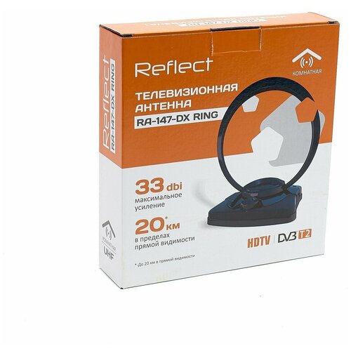 Антенна комнатная Reflect RING RA-147-DX (активная, ДМВ, с б/п, 33 дБи, коробка)