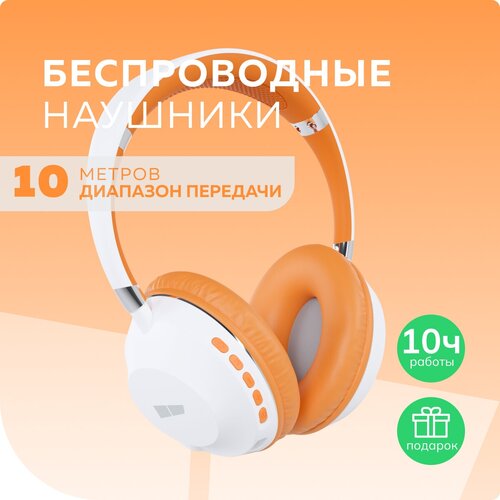 Bluetooth-наушники накладные Smart 5.1 400mAh More choice HW34S с фонариком White Orange
