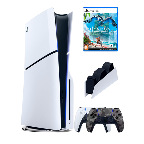 PS5 (ПС5) Игровая приставка Sony PlayStation 5 Slim disc + 2-й геймпад(камуфляж) + зарядное + игра Horizon