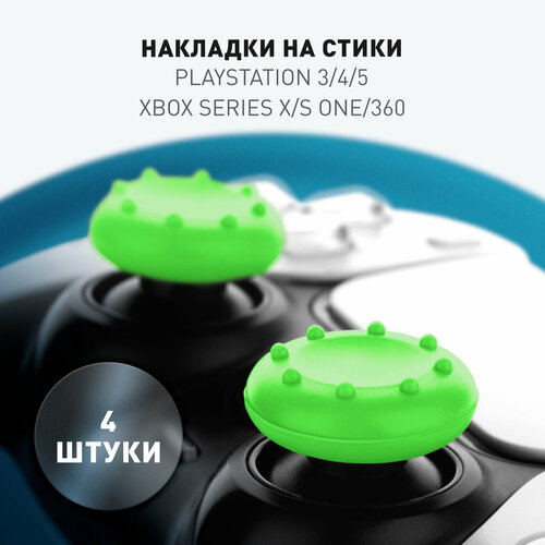ROSCO Набор Накладки на стики на геймпад Sony PlayStation 5 DualSense, PlayStation 4 DualShock, PlayStation 3, Xbox 360, Xbox One на контроллер зеленый 4 шт, зелeный, 4 шт.