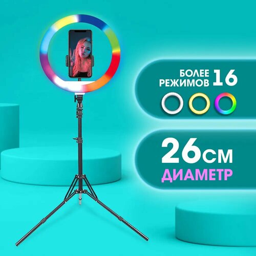 Кольцевая селфи-лампа RGB LED / 26 см / со штативом