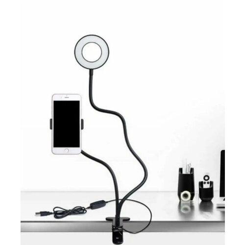 Кольцевая селфи-лампа с держателем для телефона, светодиодная кольцевая лампа, настольная селфи лампа со штативом, чёрная