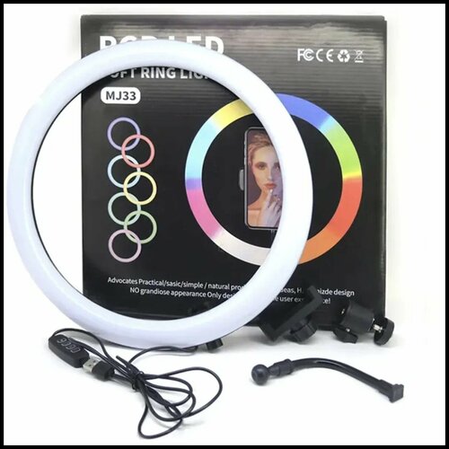 Кольцевая светодиодная RGB лампа 33 см MJ33 цветная