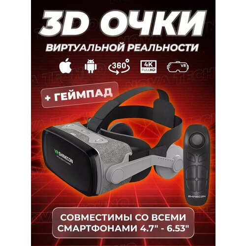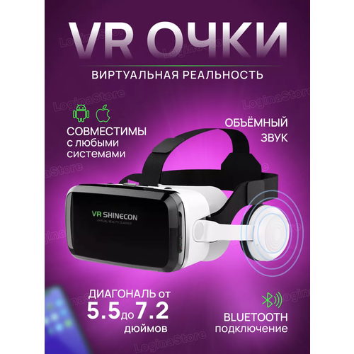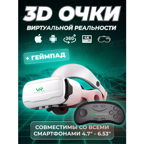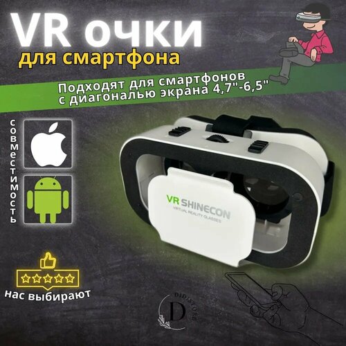 Виртуальные очки для телефона с экраном 4.7"-6.53"/VR очки для игр с 3D эффектом /с защитой глаз от синего света, с наушниками белый, черный, серый, бесцветный, белый