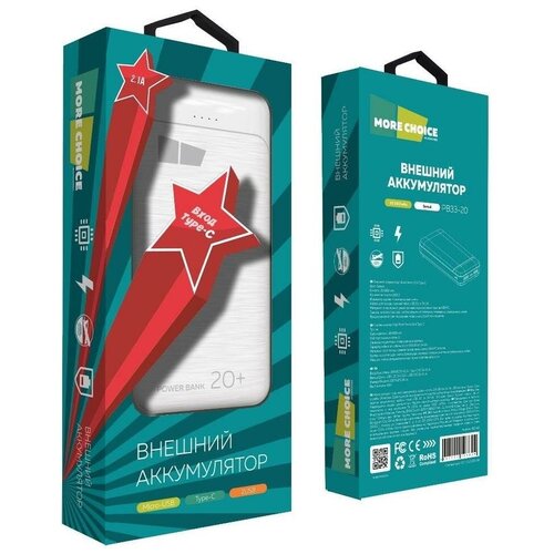 Внешний аккумулятор 20000mAh 2USB 2.1A More choice PB33-20 (White)
